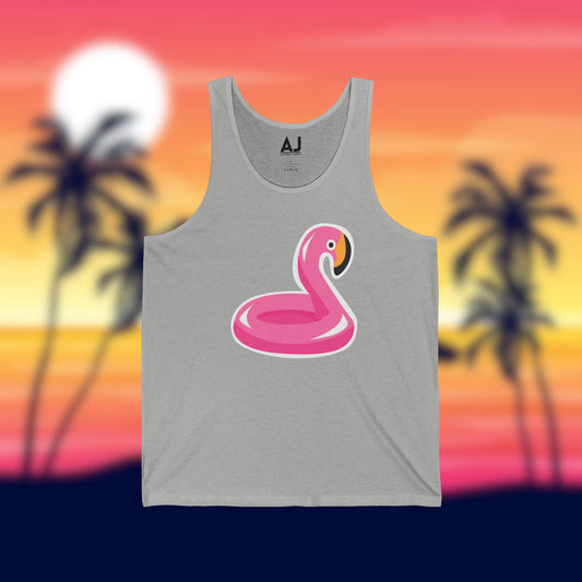 Summer Vibes Pink Flamingo Floaty Unisex Jersey Tank